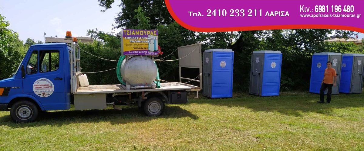 Στην εταιρεία ΤΣΙΑΜΟΥΡΑΣ, στη Λάρισα, θα βρείτε υπηρεσίες ενοικίασης χημικών τουαλετών, στις καλύτερες τιμές της αγοράς. Εύκολη και γρήγορη τοποθέτηση.